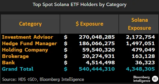 Bloomberg ETF analyst James Seyffart shared 13F filing data on X, revealing the institutional holders of spot Solana ETFs.