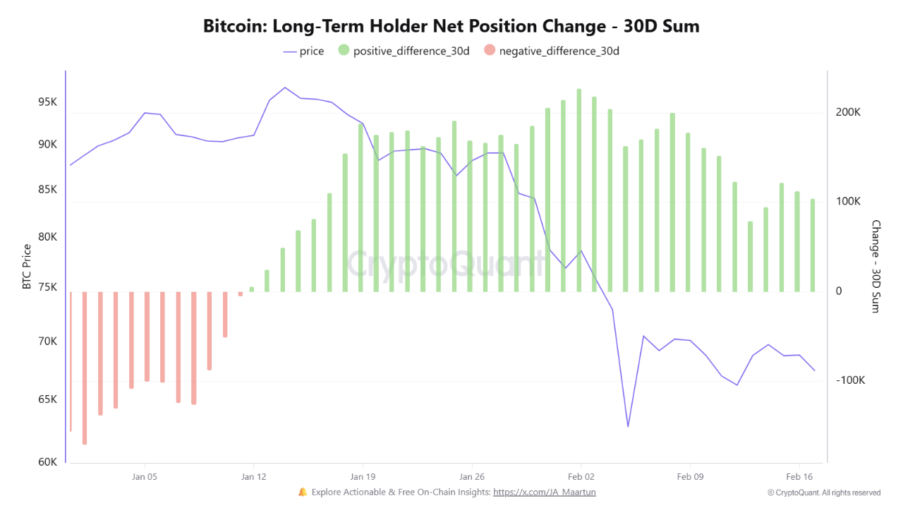 While Bitcoin (BTC) long-term holders have resumed buying, the momentum is not yet strong enough to drive a price increase, according to an analysis by CryptoQuant contributor Burak Kesmeci. He explained that for the past six months, long-term holders consistently sold BTC near its price peaks. However, this trend halted and shifted to an accumulation phase after the price fell to the $62,000 to $68,000 range on Jan. 12. Since the beginning of the year, the average daily net accumulation by these holders has expanded to approximately 115 BTC, and selling pressure from this cohort appears to have virtually disappeared. Kesmeci noted that this pattern is similar to past "stagnation periods" that preceded large-scale volatility, suggesting that selling pressure from long-term holders is likely to remain limited for the time being.