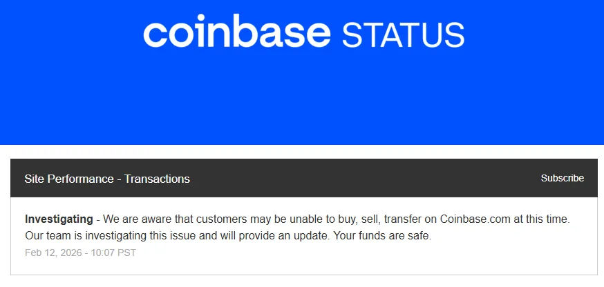 Coinbase has announced through its official channels that it is experiencing errors with buy, sell, and transfer functions on its website, Coinbase.com. The company is investigating the issue and has assured users that their assets are safe.
