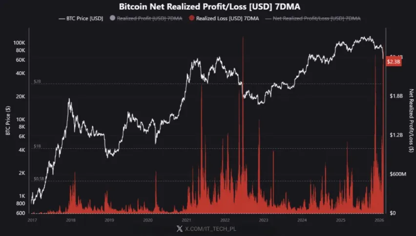 On-chain data platform CryptoQuant analyzed on its official X account that the recent Bitcoin decline will be recorded as one of the largest crashes in the cryptocurrency's history, comparable to the 2021 crash. The firm emphasized that the event ranks between the third and fifth largest of all time based on the scale of losses, adding that crashes of this magnitude are rare in Bitcoin's history.