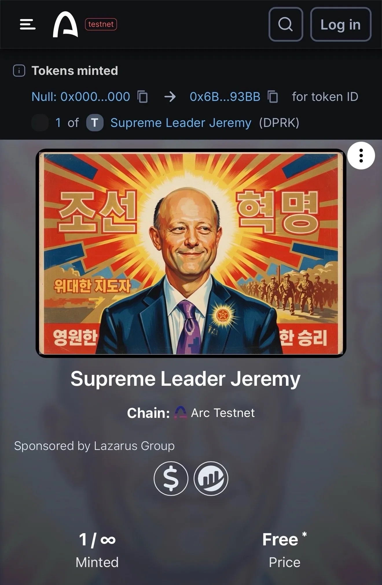 An address linked to the recent hack of Solana's Drift Protocol has minted a North Korean propaganda-themed NFT to the public wallet of Circle CEO Jeremy Allaire, according to on-chain analyst ZachXBT. The address, dprk.arc, operating on Circle's Layer 1 chain Arc, sent the NFT to Allaire's jerallaire.arc address. On the blockchain, anyone can send a newly created NFT to a public address, effectively assigning ownership without the recipient's consent. The dprk.arc address was previously identified as having received approximately $80 million in USDC via a bridge from the Drift Protocol attacker's wallet.