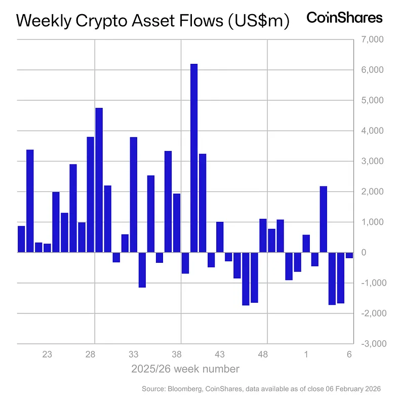 Digital asset investment products saw net outflows totaling $187 million last week, marking the third consecutive week of withdrawals, according to the latest weekly report from CoinShares. While Bitcoin investment products experienced $264 million in outflows, funds for XRP, SOL, and ETH recorded net inflows.