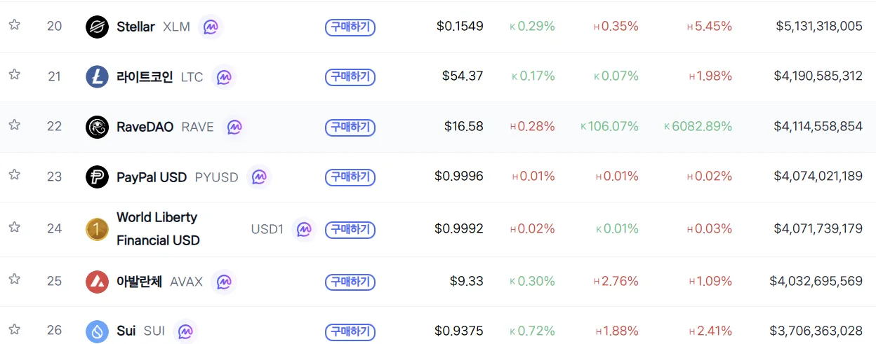 RaveDAO (RAVE) has surpassed Avalanche (AVAX) and Sui (SUI) to rank 22nd in overall cryptocurrency market capitalization after surging more than 6,000% over the past seven days. According to CoinMarketCap, RAVE is currently trading at $16.58, up 107.02% over the past 24 hours, with a market cap of approximately $4.1 billion.
