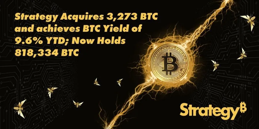 MicroStrategy (MSTR) announced it has purchased an additional 3,273 BTC for $255 million at an average price of $77,906 per BTC. The company now holds a total of 818,334 BTC.