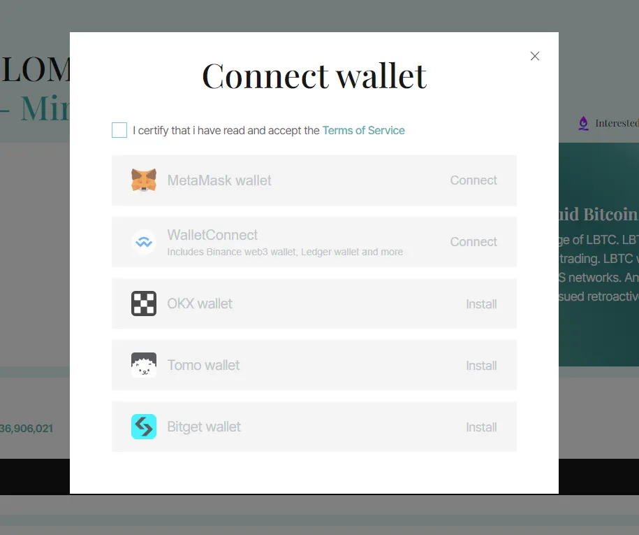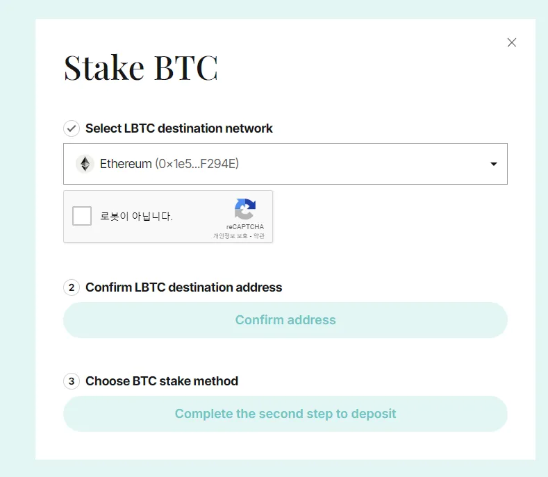 (2) Click the BTC staking button (Receive LBTC when staking)