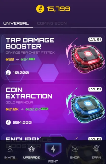 (4) Upgrade items in the Upgrade tab