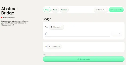 (1) Go to the 👉bridge page👈, connect your wallet, and bridge your ETH to the Abstract network