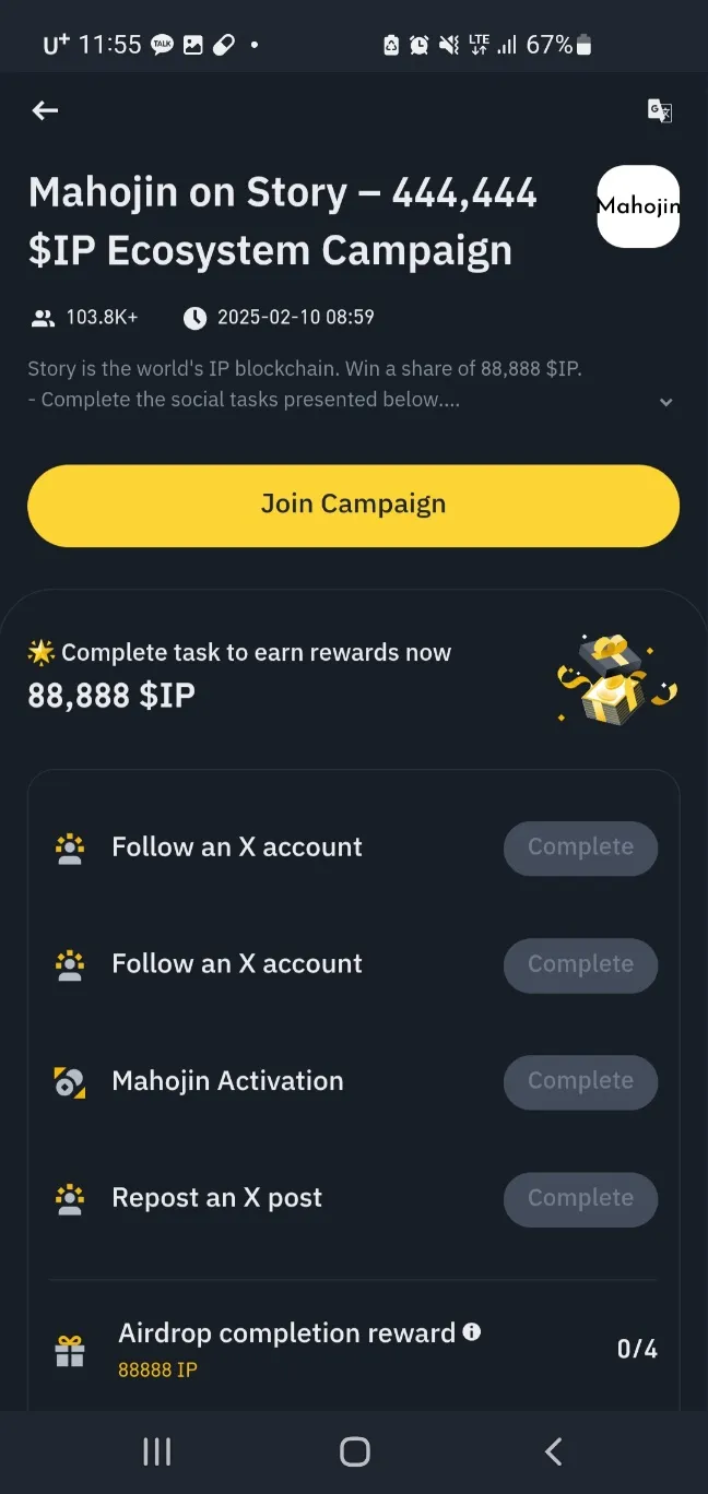 (4) Click the 'Join Campaign' button and perform missions such as following SNS