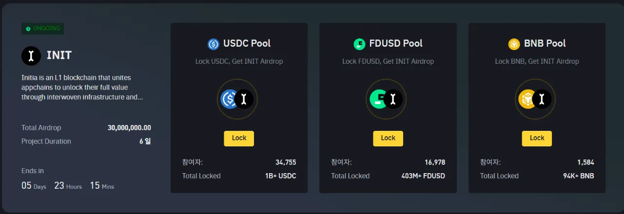 (3) Lock up in FDUSD pool (1,500,000 INIT allocated)