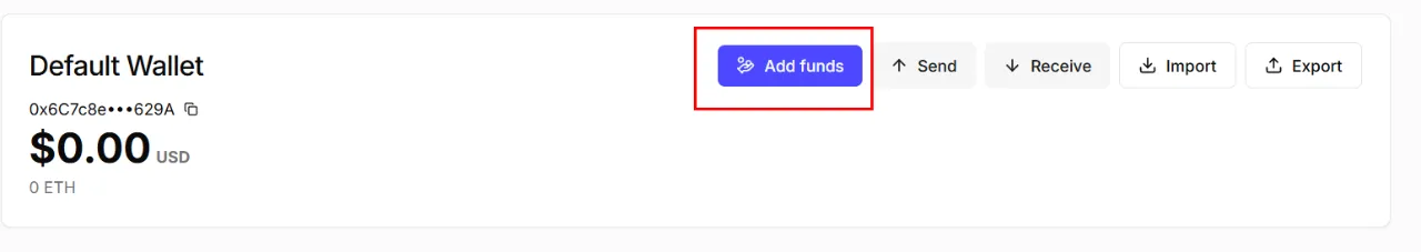 (2) Click the 'Add funds' button to deposit testnet Ethereum
