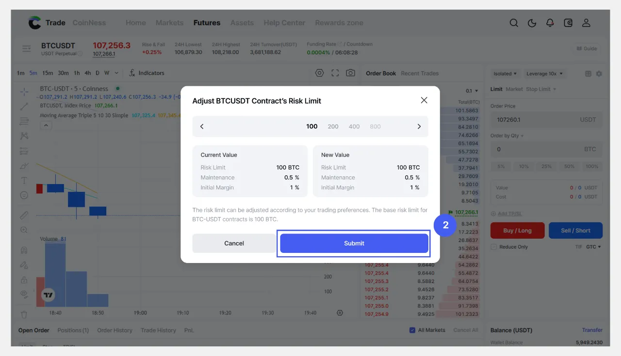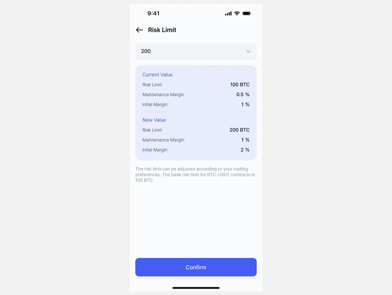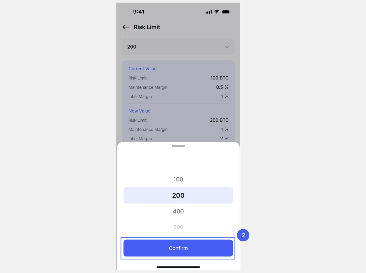 2. Suriin ang detalye ng risk limit, itakda ito sa nais na antas, at kumpirmahin.