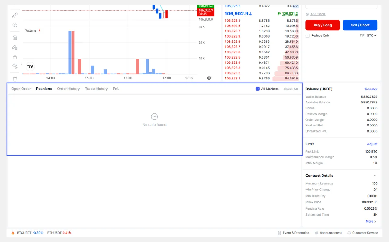Maaari mong tingnan ang mga detalye ng iyong long at short positions at ang kanilang realized at unrealized na kita o lugi sa real-time. Maaari mo ring tingnan ang margin info, magdagdag ng margin, o isara ang bahagi o lahat ng iyong posisyon.