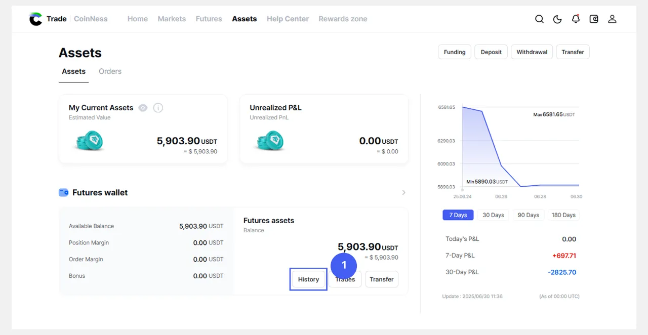 1. Sa pahina ng [Assets], piliin ang tab na [History].