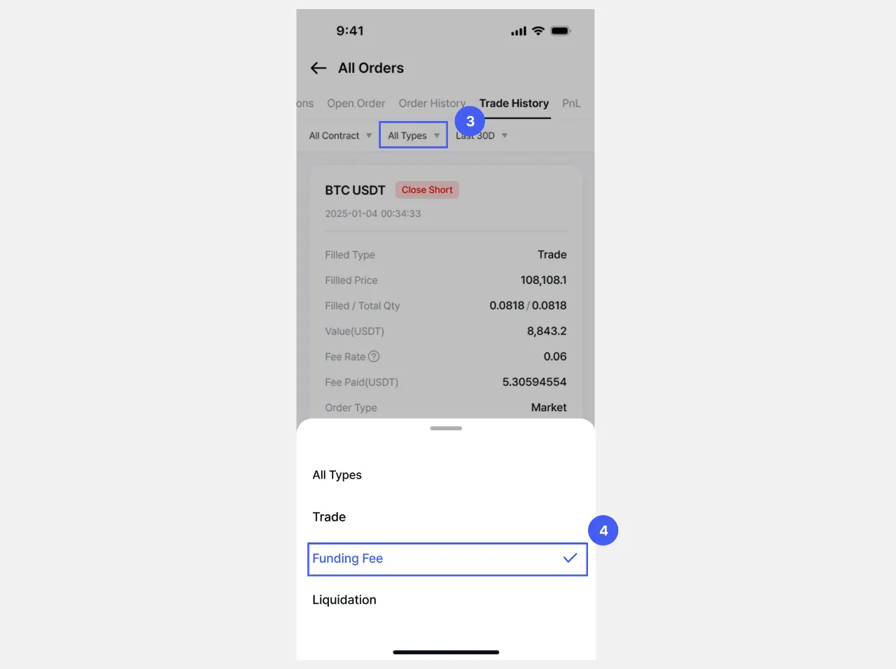 3. Gamitin ang filter na [Funding Fee] upang tingnan ang iyong kasaysayan ng mga bayarin.