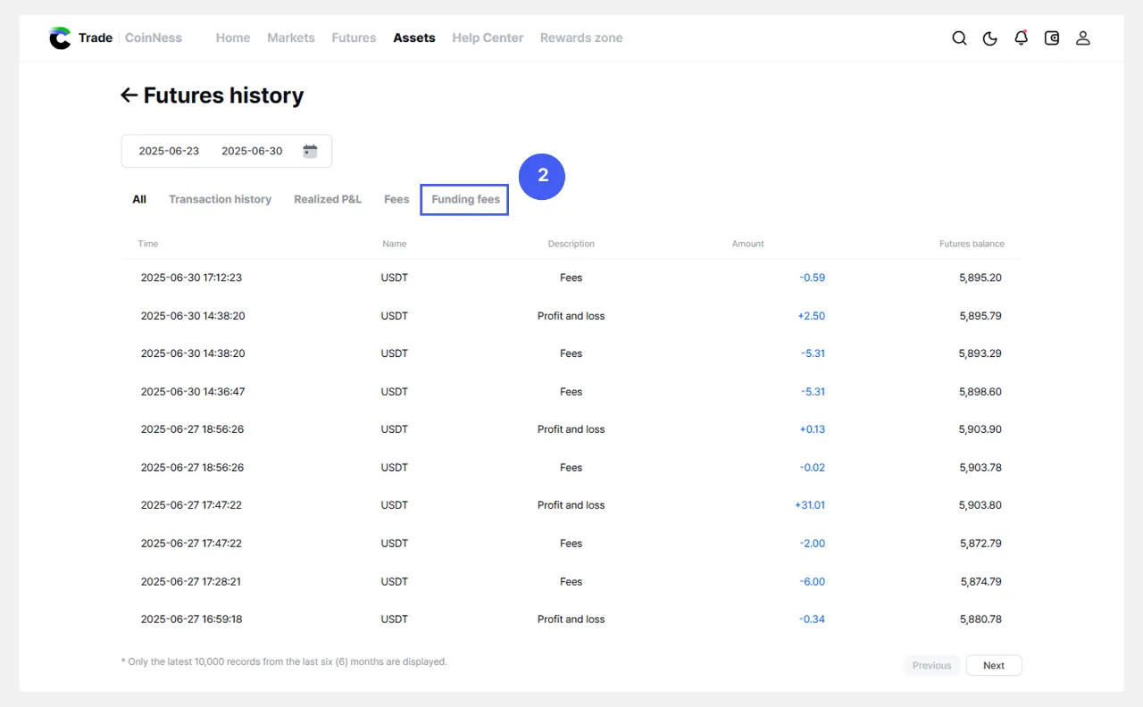 2. I-click ang tab na [Funding Fees] upang makita ang iyong kasaysayan ng mga siningil na bayarin.
