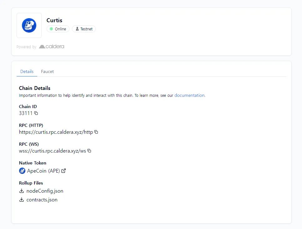 - Explorer: https://curtis.explorer.caldera.xyz/