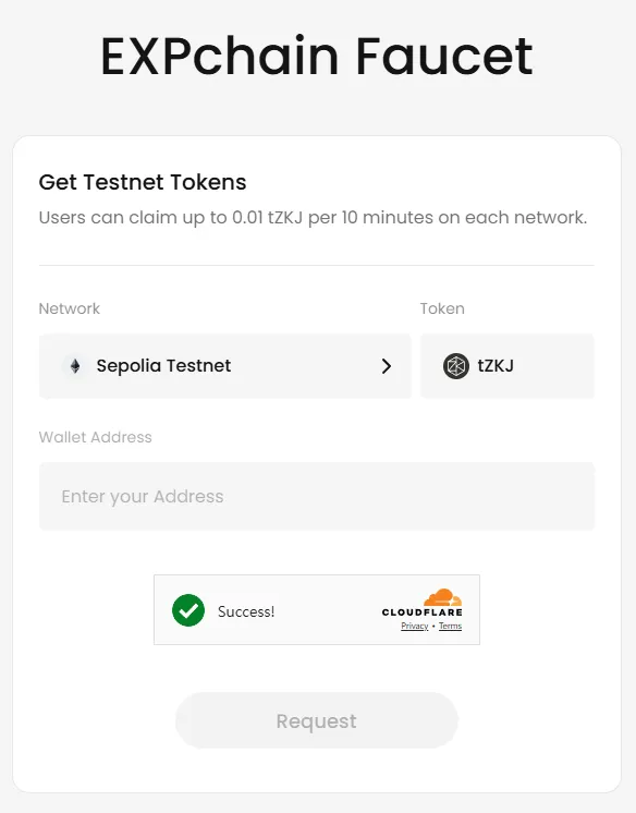 (2) Set the network to Sepolia Testnet, enter the wallet address, and request testnet tokens