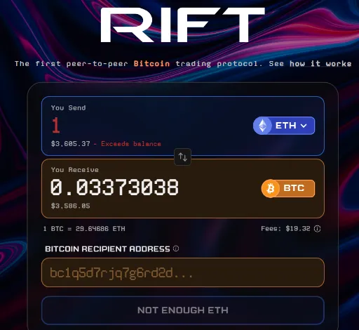 (3) Enter your BTC address and swap assets (BTC can also be exchanged for cbBTC)