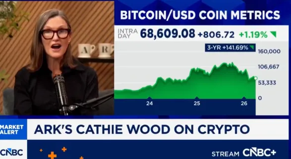 暗号資産(仮想通貨)投資会社でBTC現物ETF発行元のアーク・インベストメント(Ark Investment)のキャシー・ウッド(Cathie Wood)CEOは、ビットコイン(BTC)が80%以上下落することは絶対にないと、CNBCとのインタビューで述べた。