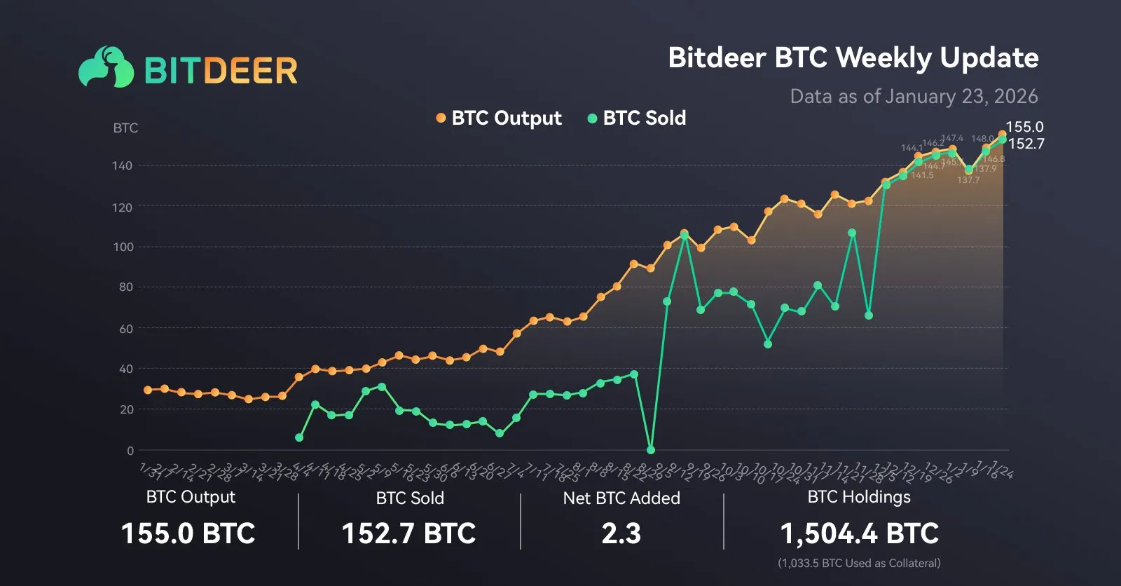 ビットコインクラウドマイニング業者のビットディア(Bitdeer)が公式Xを通じて今週155 BTCを採掘したと発表した。同期間152.7 BTCを売却し、23日(現地時間)基準で1504.4 BTCを純保有していることが分かった。