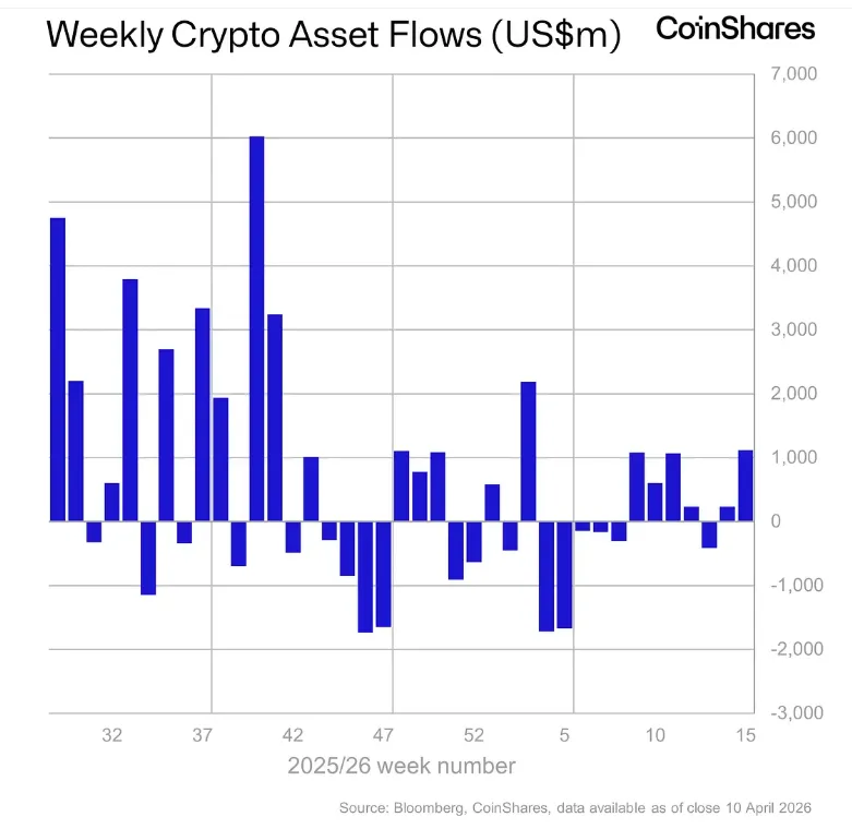 コインシェアーズ(CoinShares)は、先週デジタル資産投資商品に11億ドルが純流入したと、週次資金フローレポートを通じて伝えた。