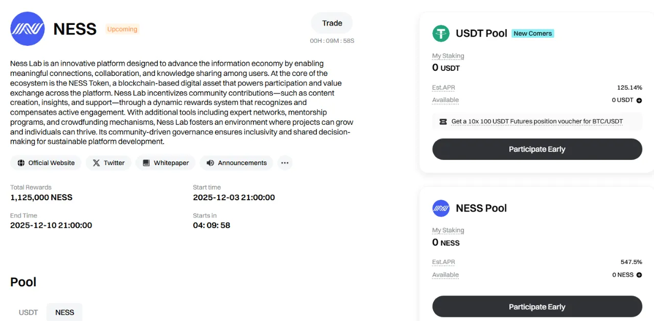 (3)NESSプールでロックアップ及びランチプールに参加(最大ロックアップ数量:500,000 NESS)