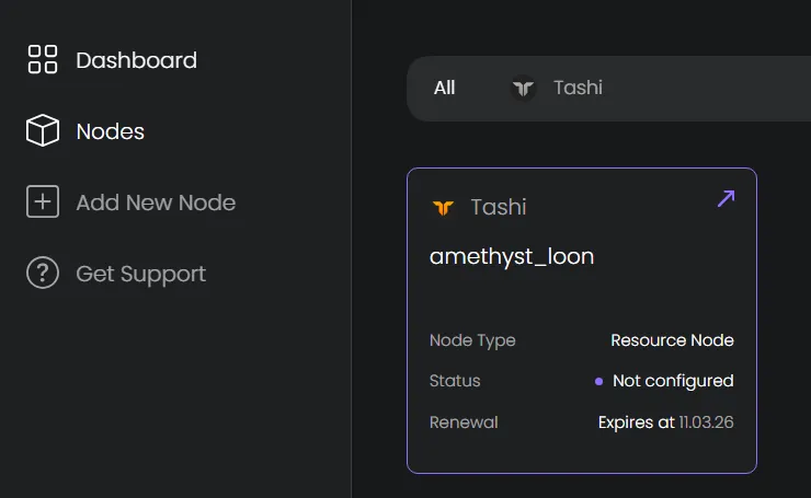 (4) 「Nodes」タブに移動して購入したノードをクリック