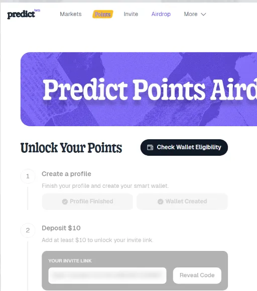 - ポリマーケット、アスター、オピニオンなどのプロジェクトに参加したことがある場合は、その財布を接続して追加ポイントを獲得することができます。