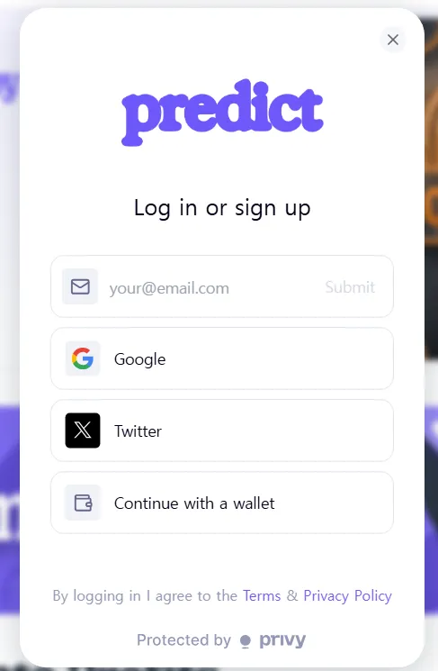 (2) 画面右上の「Sign up」ボタンをクリックした後、メールアカウントまたはウォレット接続でログイン