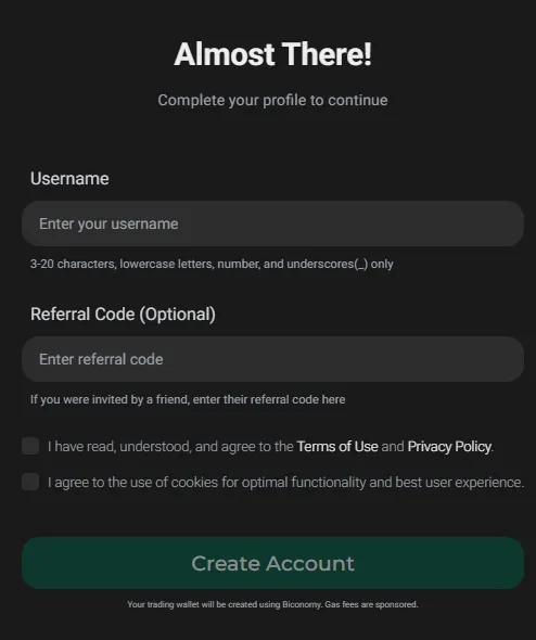 (4) 'Username' 設定後 'Create Account' ボタンをクリックしてアカウントを作成