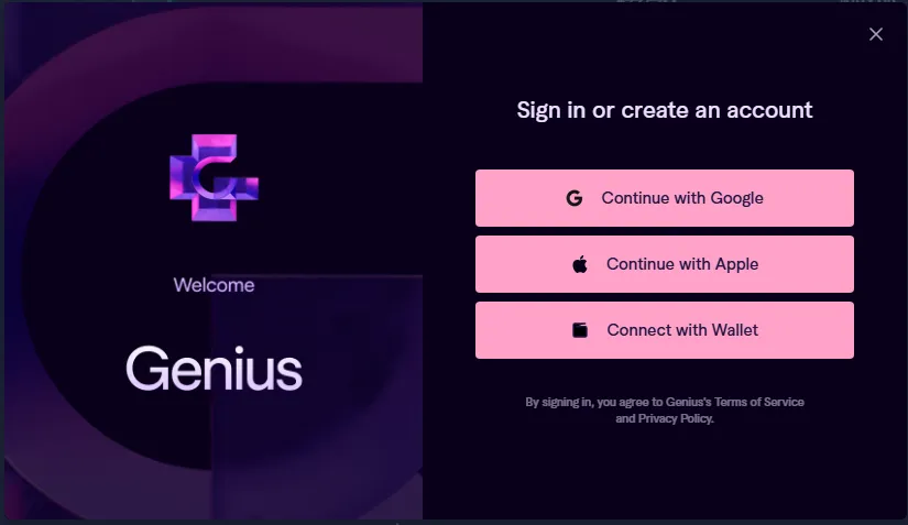 (1) 👉ジニアスウェブサイトに移動後👈、ウォレット接続でログイン
