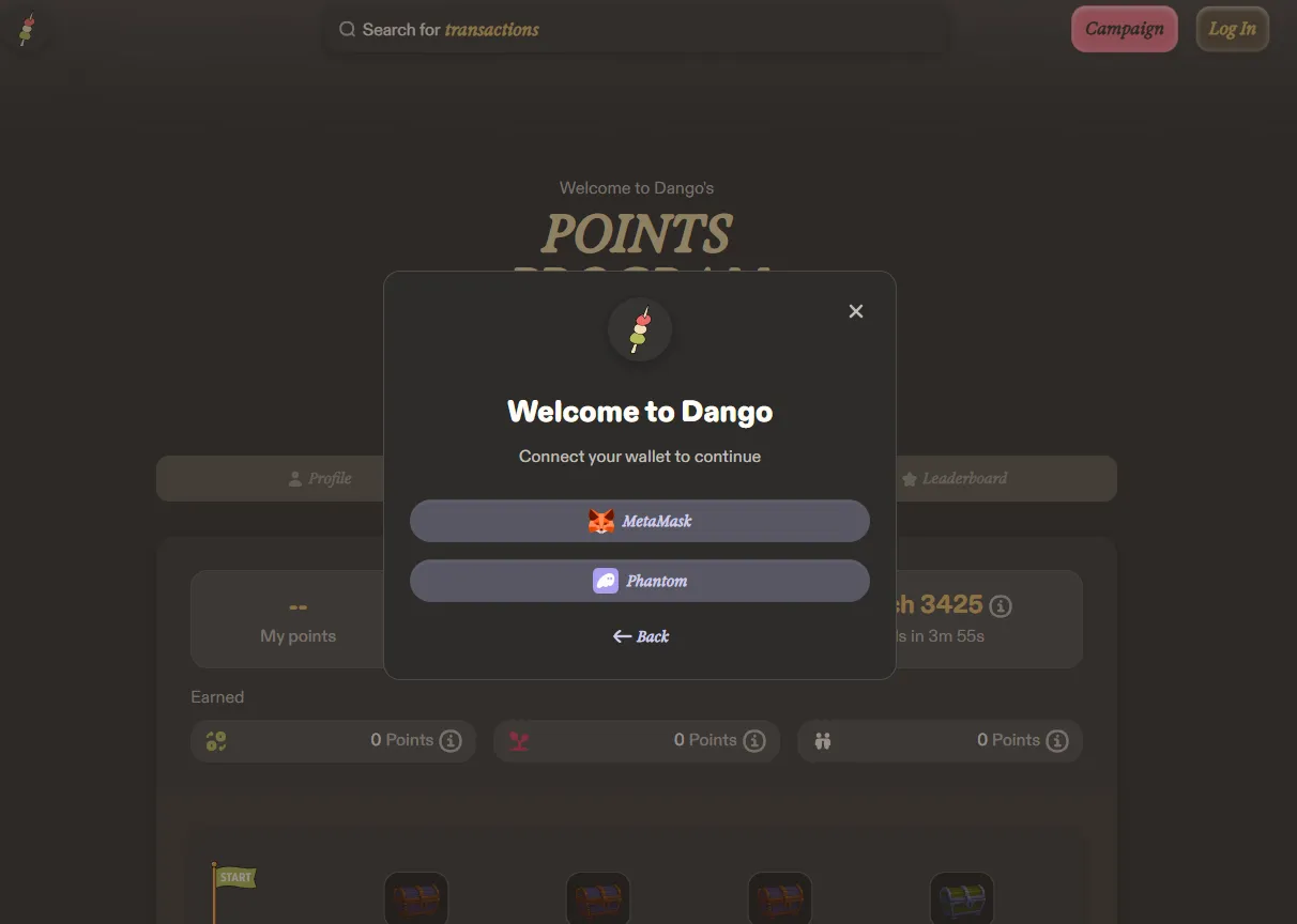 (1) 👉Dangoテストネットのウ👈ェブサイトに移動し、「Login」をクリックしてMetaMaskウォレットを連携させる