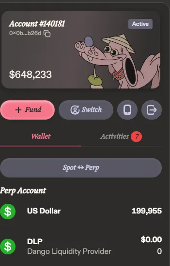 (3) 取引を行うため、「Spot < - > Perp」をクリックし、先物ウォレットへUSDを送金する