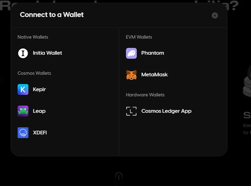 (2) 「連携」をクリックしてInitiaウォレットをダウンロード