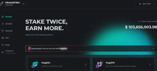 (3)画面左側の「DeFi」タブに移動した後、先に受け取ったfragSOLを利用してリステイキング