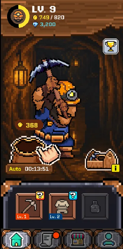 (2) 自動的に集められた金貨を受け取り、レベルアップ