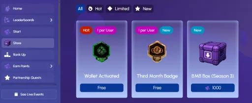 (3)「Store」タブに移動した後、以前に獲得したポイントを使用してBMBボックスを購入する