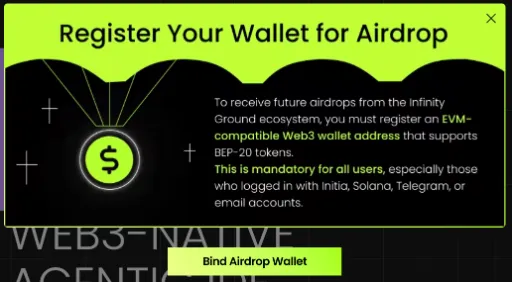 (1) 👉インフィニティグラウンドウェブサイトに移動後👈、エアドロップのための財布接続
