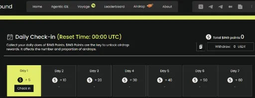 (2)「Voyage」タブに移動し、毎日出席チェックでポイントを獲得
