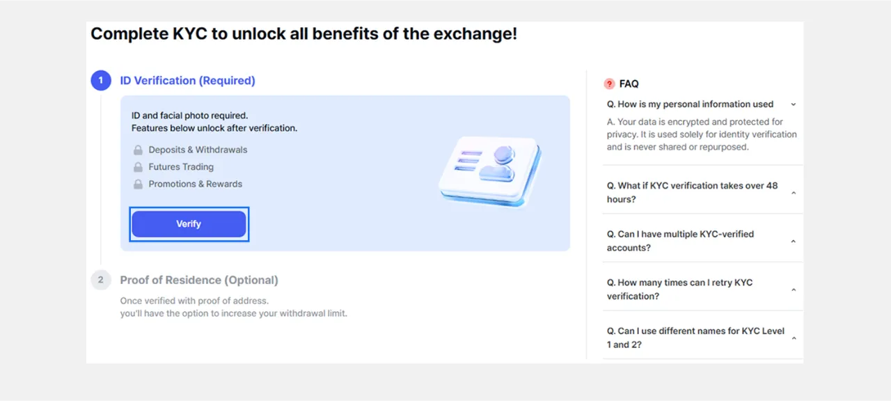 KYC (Үйлчлүүлэгчээ тань) 1-р түвшний баталгаажуулалт нь биржийн үйлчилгээг ашиглахад зайлшгүй шаардлагатай таних процесс юм. Та доорх мэдээллийг ашиглан 1-р түвшний баталгаажуулалтаа дуусгана уу.