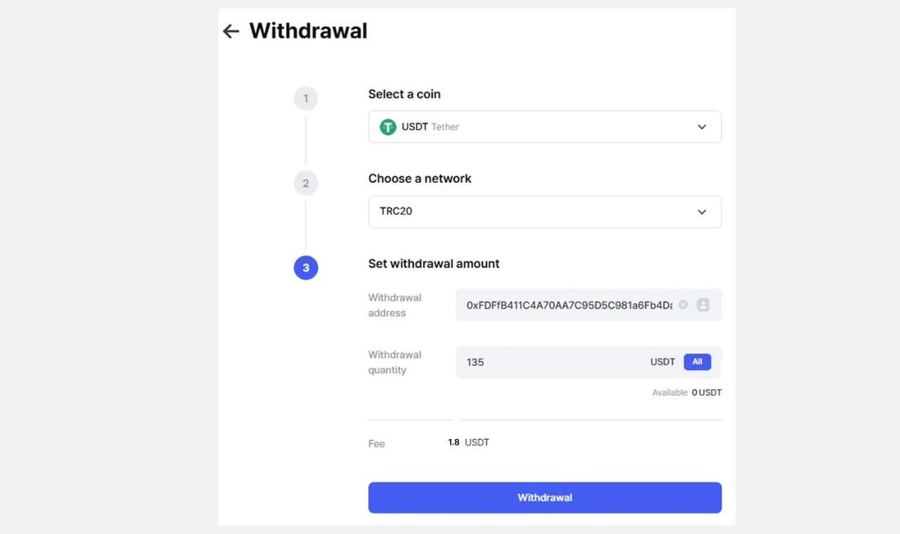 | USDT | TRC20 | 1 USDT | 1 USDT | 0 USDT | ≈ 1 USDT |