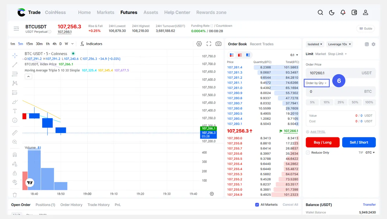 Та ордерын хэмжээг коин, USDT, эсвэл гэрээ нэгжээр оруулах боломжтой.