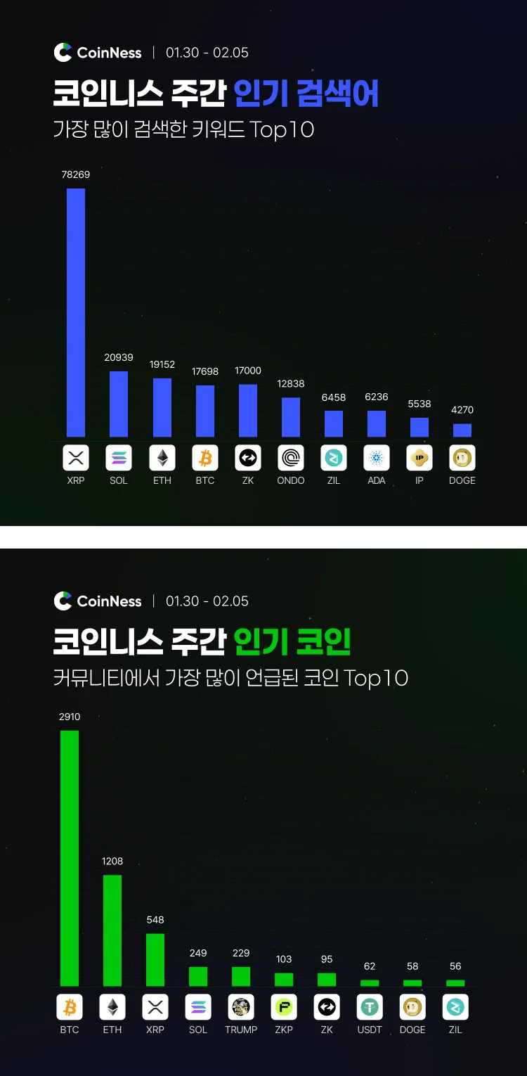 코인니스에서 이번 주(1/30~2/5) 가장 많이 검색되고 이슈가 된 키워드는 다음과 같다.