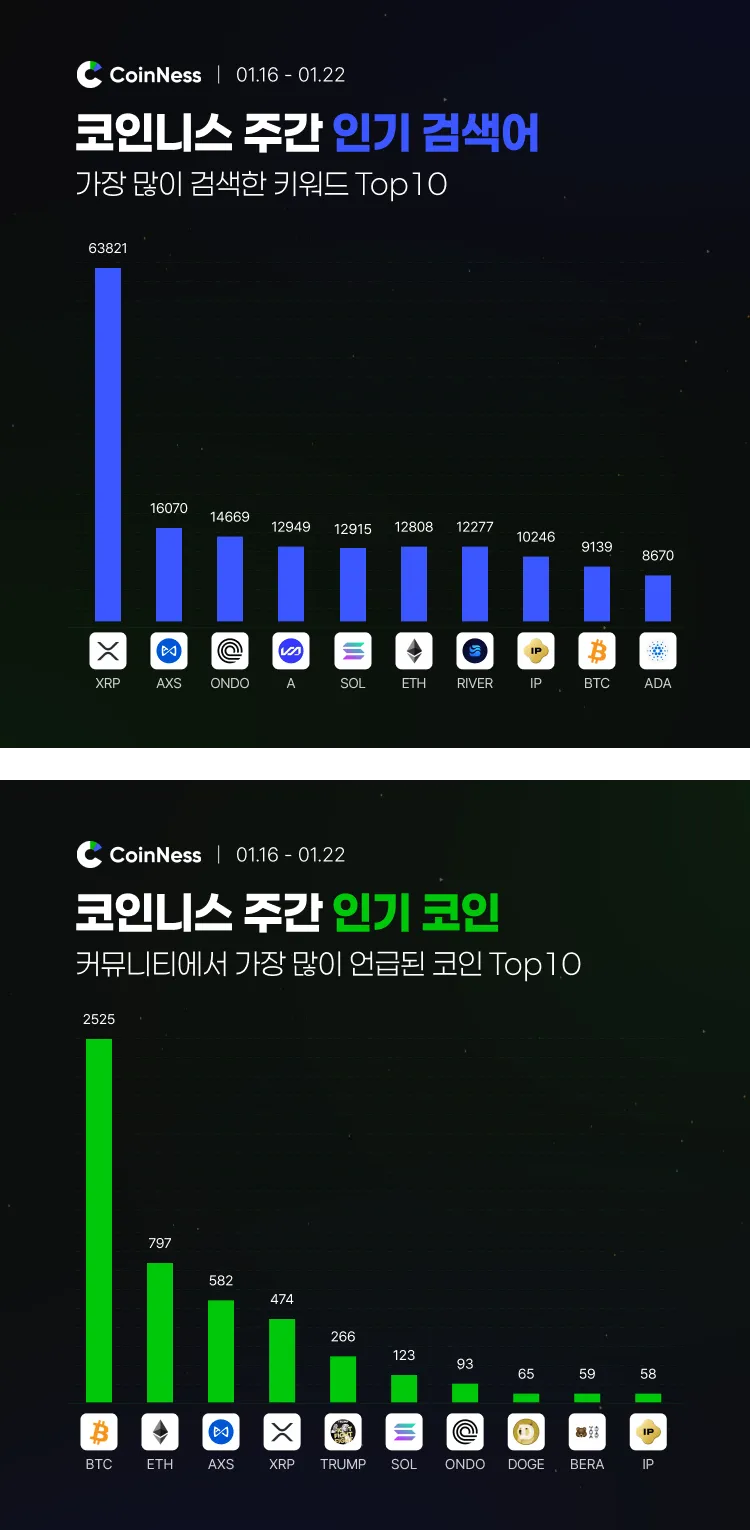 코인니스에서 이번 주(1/16~1/22) 가장 많이 검색되고 이슈가 된 키워드는 다음과 같다.