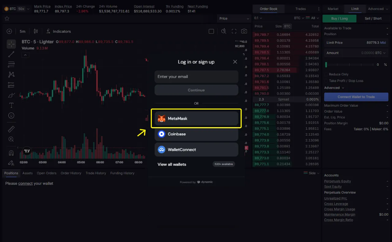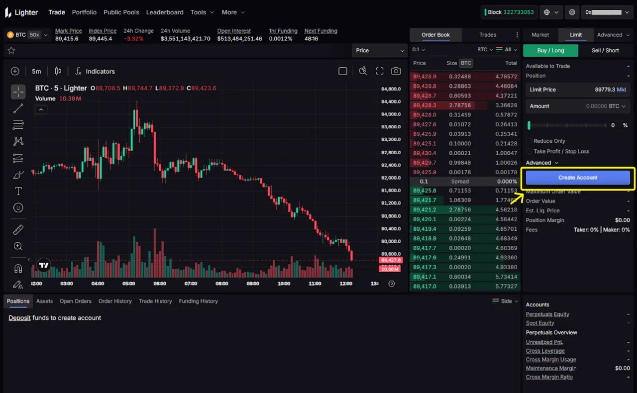 (3) 지갑 연결 완료 후 [Create Account] 선택