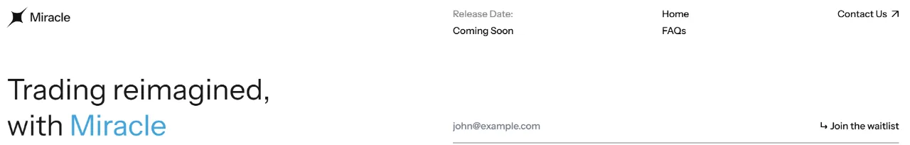 (1) 👉미라클 웹사이트👈로 이동 후 이메일 계정을 입력하고 웨이트리스트 등록