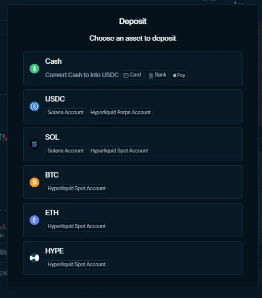 (2) 우측 상단 'Deposit' 버튼을 클릭 후 원하는 방식으로 자산 입금