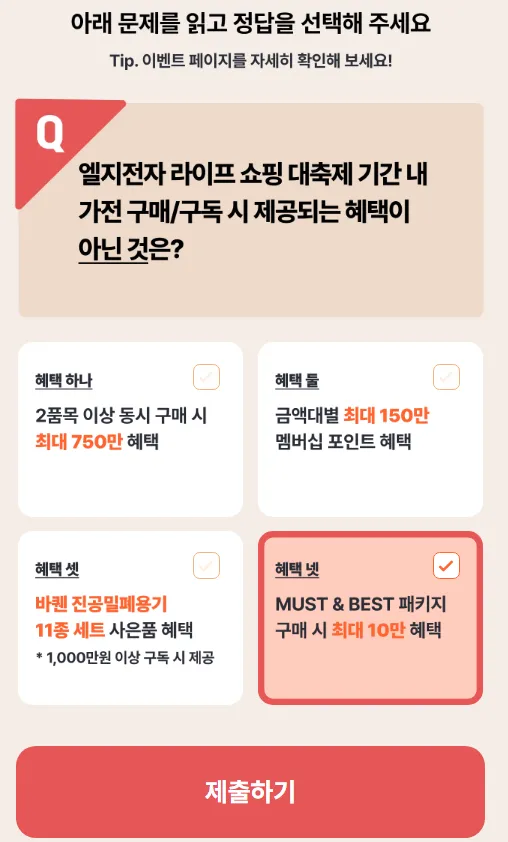 ※ 정답: 혜택 넷 (MUST & BEST 패키지 구매 시 최대 10만 혜택)
