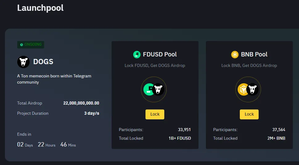 (2) BNB 풀에서 락업 (18,700,000,000 DOGS 할당)