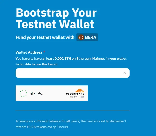 (1) 👉Faucet👈 페이지로 이동해 테스트넷 베라토큰 수령